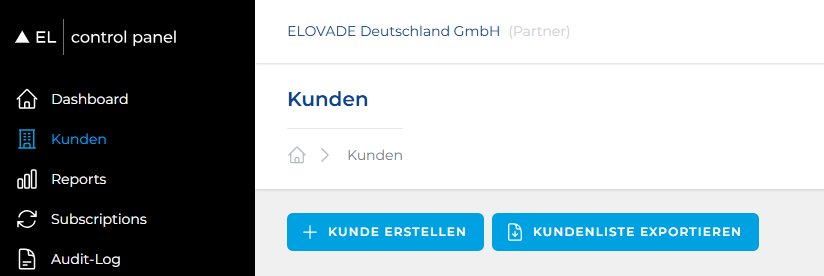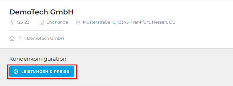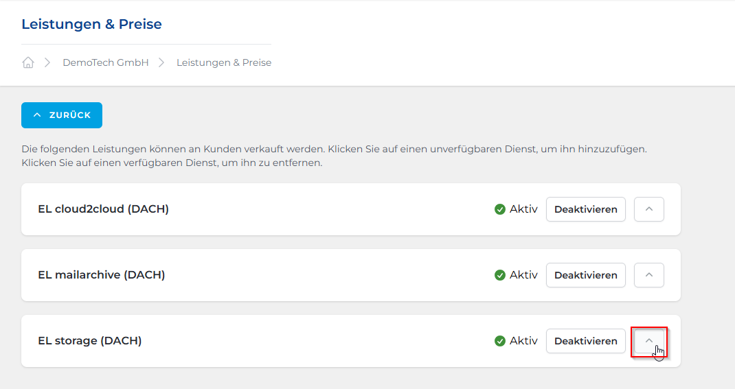 In die Kunden Detailseite wurde ein Button „Leistungen“ zur Zuordnung der verfügbaren EL Cloud-Dienste zum jeweiligen Kunden eingebunden.