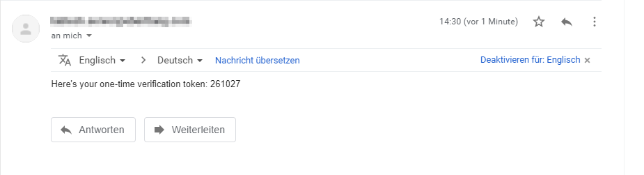 Die Nachricht mit dem Token sieht folgendermaßen aus: