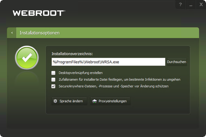 http://anywhere.webrootcloudav.com/zerol/wsasme.exe - Wählen Sie bei Start der Installation die gewünschte Sprache aus.