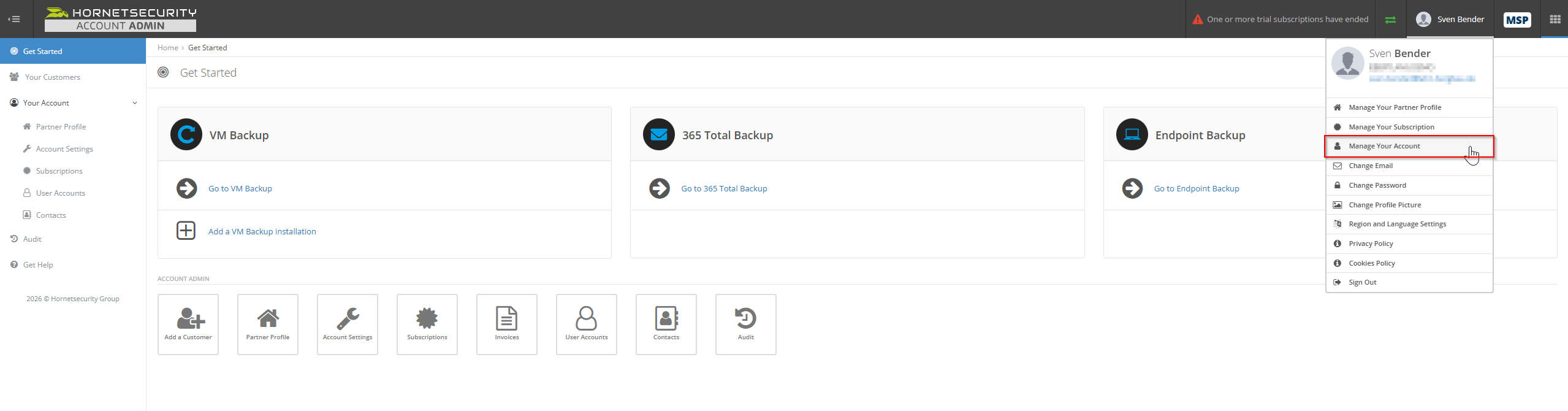 2. Gehen Sie anschließend in [Your Account] und [Account Settings]