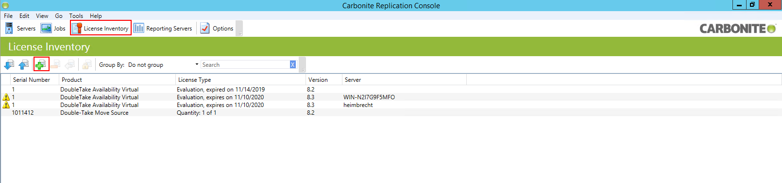 In diesem Artikel zeigen wir Ihnen, wie Sie Ihre Carbonite Migrate Lizenzen in der Carbonite Replication Console aktivieren können. Öffnen Sie zuerst die Replication Console und navigieren Sie zu dem Punkt "License Inventory". Es öffnet sich die nachfolgende Übersicht: