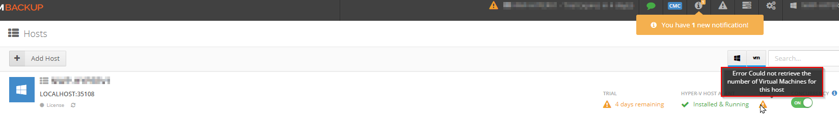 Error Could not retrieve the number of Virtual Machines for this host