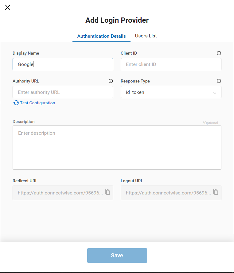 Per Standard verläuft die Anmeldung bei ConnectWise Home klassisch via Benutzername und Kennwort. Allerdings bietet der Hersteller weitere Möglichkeiten für die Authentifizierung an. Darunter fällt die Anmeldung mit dem Azure ActiveDirectory oder einem unterstützen OpenID Connect Identity Provider. Die nachfolgenden Provider werden für eine Anmeldung unterstützt: