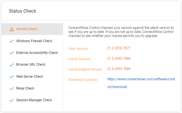 - Your Version - Die aktuell installierte Version von ScreenConnect