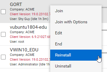 Um den Agent auf den neusten Stand zu bringen, machen Sie einen Rechtsklick und wählen „Reinstall“.