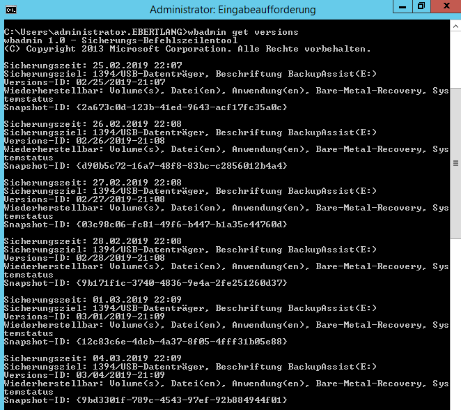 wbadmin get versions
