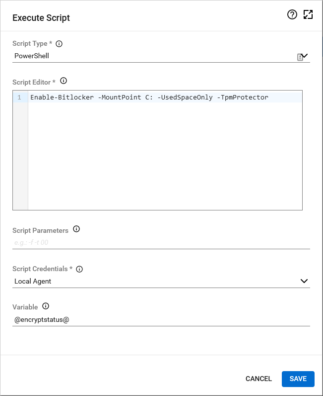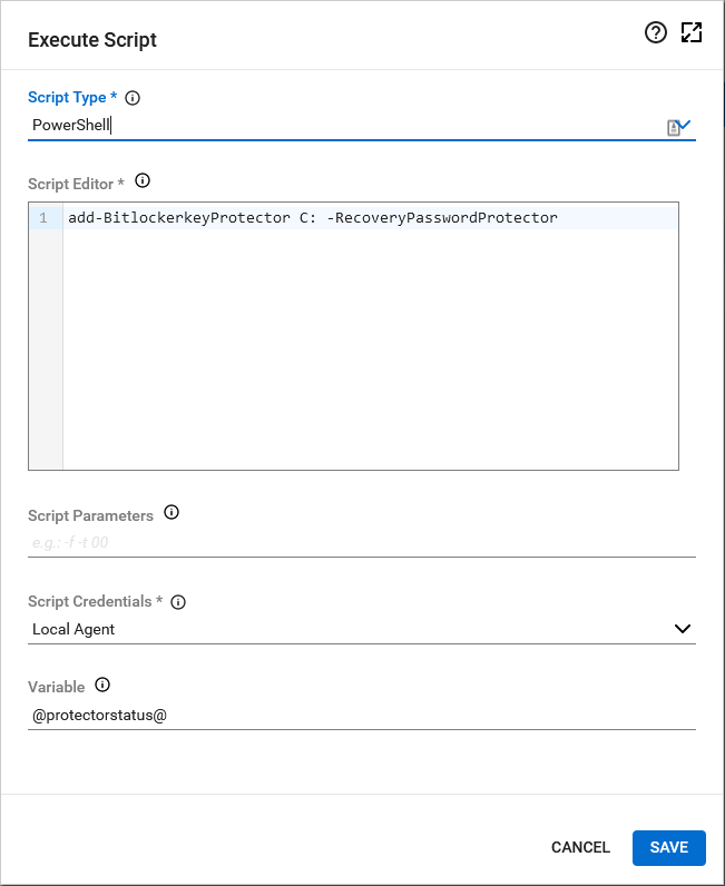 Folgendes Skript wurde verwendet, um die Aktivierung von Bitlocker per Powershell auszuführen: