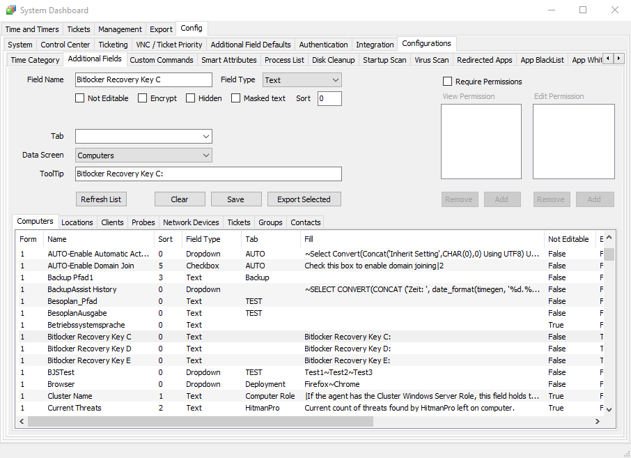 Im dritten Schritt werden nun die Extra Data Fields erstellt, die für die Abspeicherung des Recovery-Keys sowie das Recovery-Passwort erforderlich sind. Diese werden dann im Skript verwendet. Wie Sie ein EDF erstellen können, erfahren Sie hier.