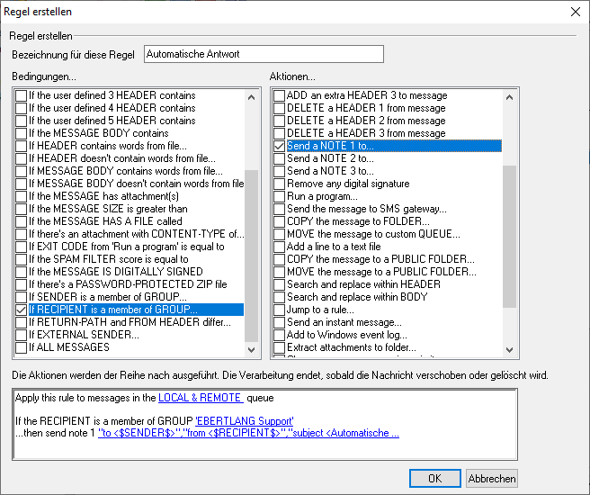 - Setzen Sie als Bedingung bitte ein Häkchen bei "If RECIPIENT is a member of GROUP..."