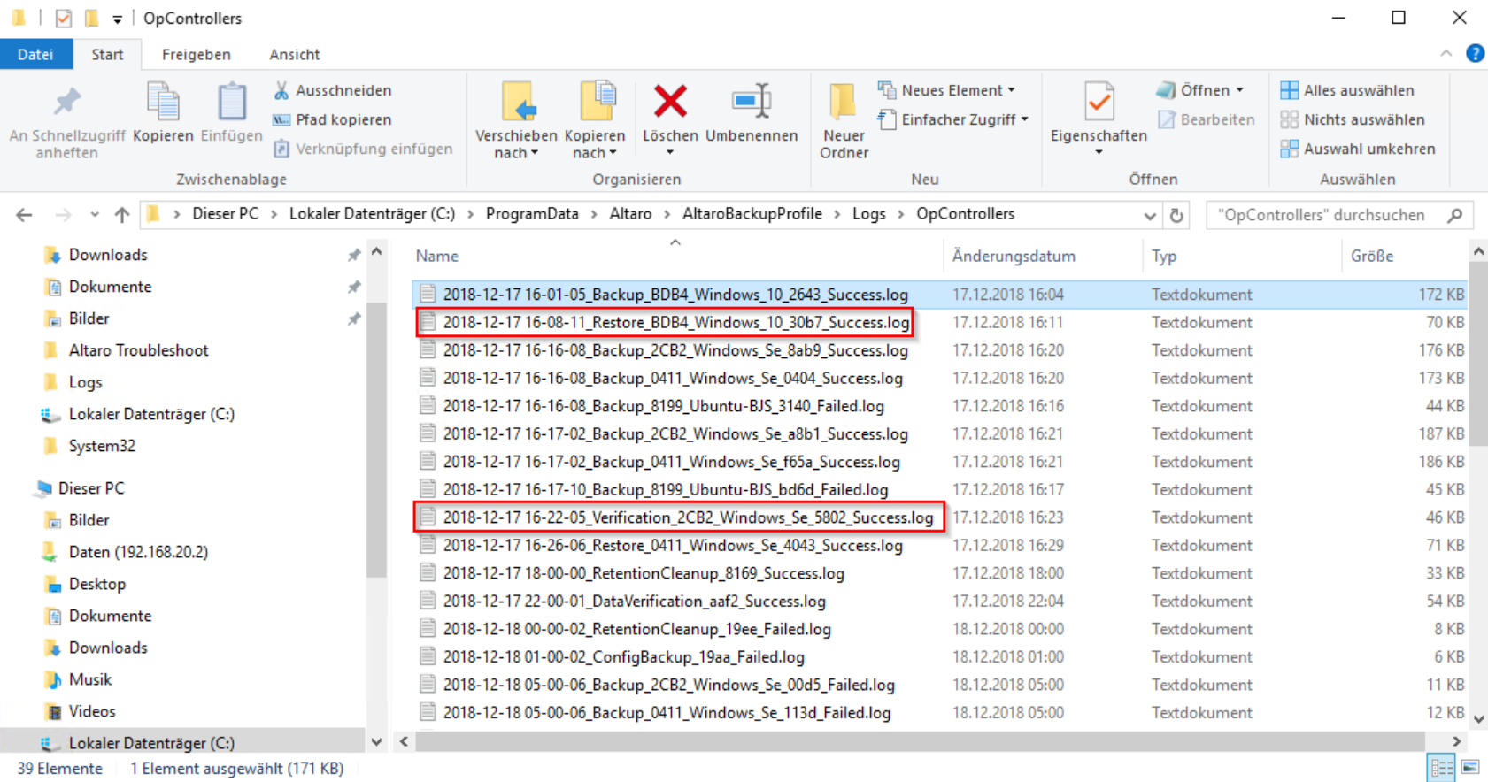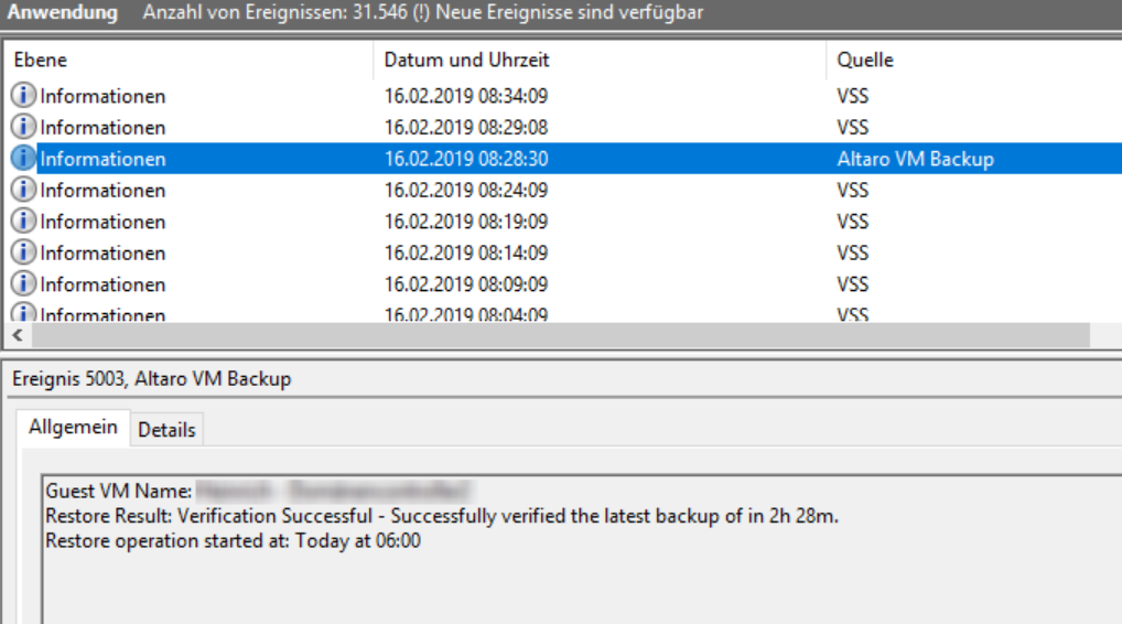 - Die Test-Restores werden zudem im Backup-Bericht und in der Windows-Ereignisanzeige protokolliert.