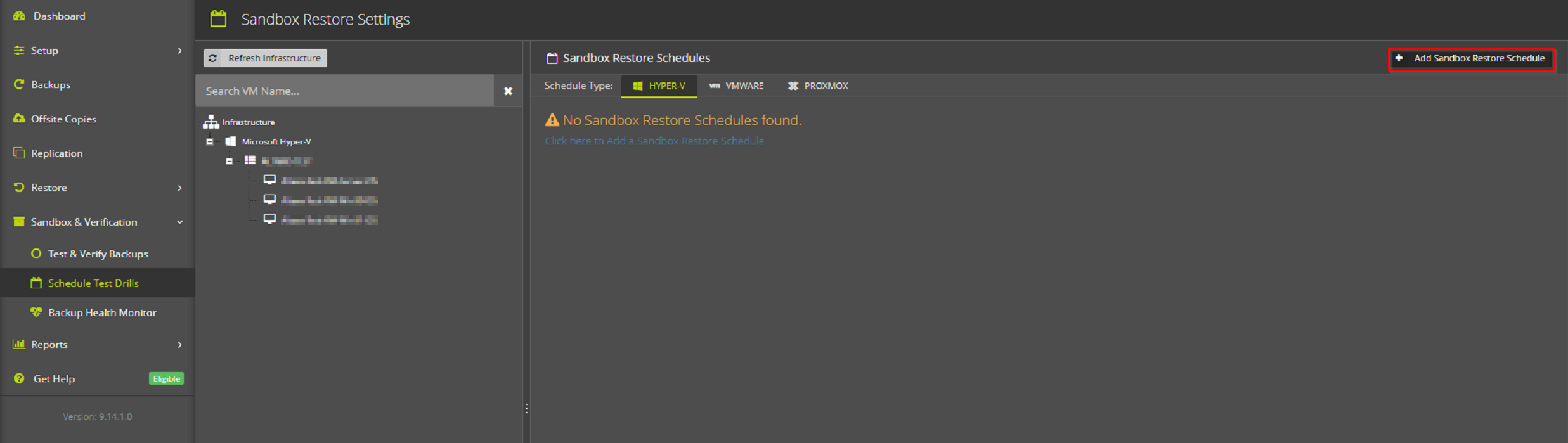 - Klicken Sie im oberen rechten Bereich auf "Add Sandbox Restore Schedule".