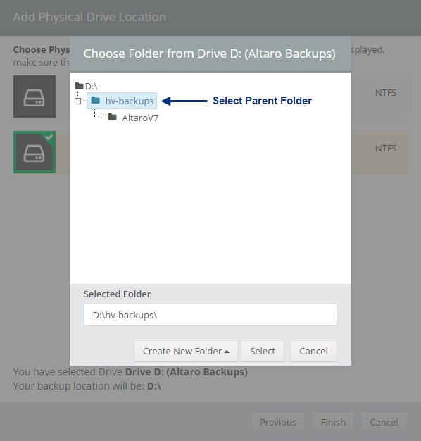 3. Bearbeiten Sie anschließend in der Altaro Management Console den Backup-Speicherort. Um nicht zwei Ordner zu erstellen, stellen Sie sicher, dass Sie auf den übergeordneten Ordner verweisen, nicht direkt auf den Ordner "AltaroV7".