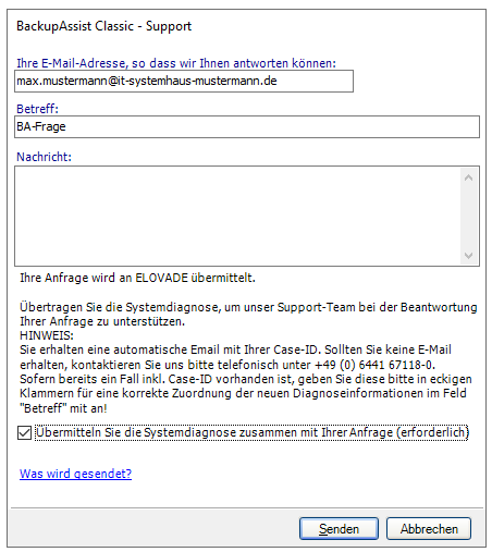 BackupAssist Diagnose-Bericht an den Support senden