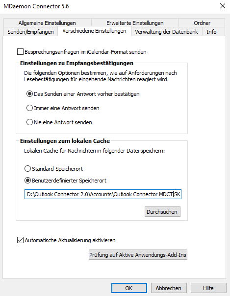 Nein, MDaemon Outlook Connector erstellt lediglich eine Datenbank, um Daten zwischenspeichern zu können. Die Datenbank wird in folgendem Verzeichnis abgelegt:
