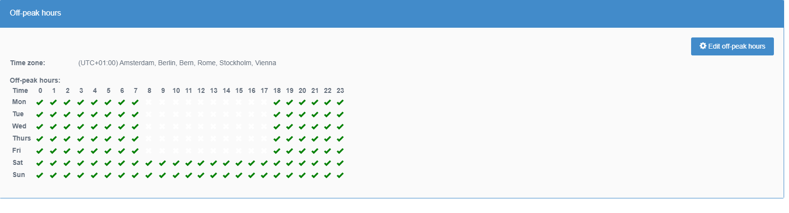 Mit "Edit off-peak hours" können die gewünschten Felder markiert oder die jeweilige Markierung entfernt werden.