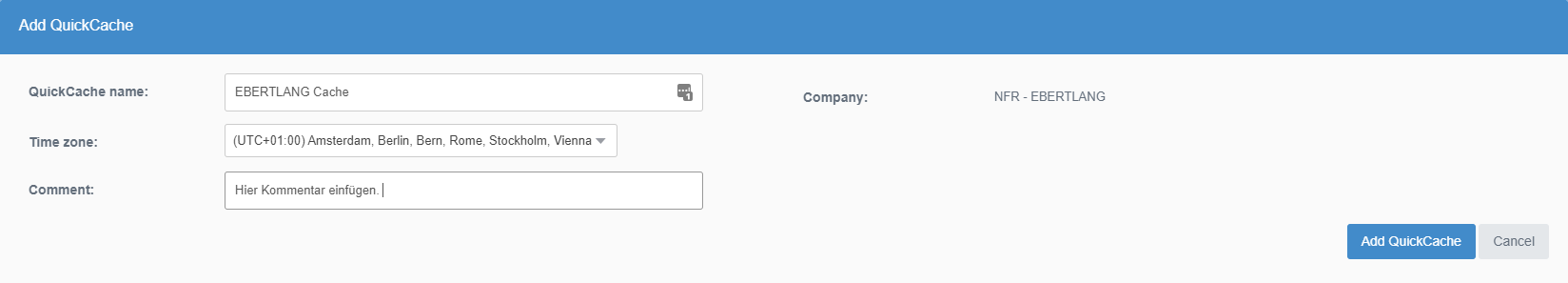 Gehen Sie nun auf "Add QuickCache", es öffnet sich das nachfolgende Fenster: