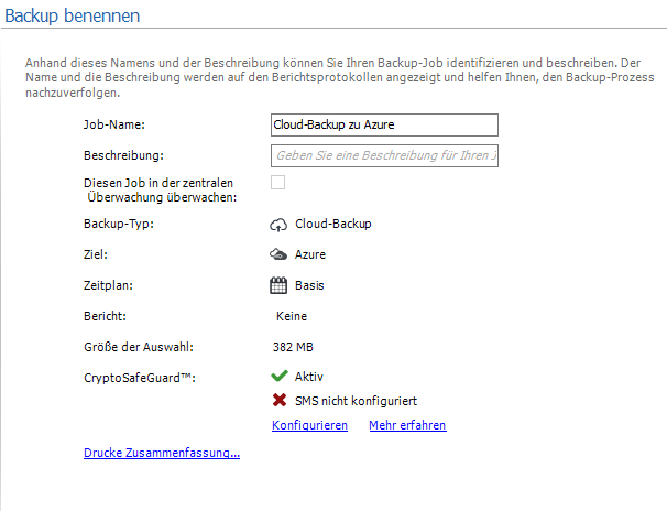 Wählen Sie nun "Weiter" aus und vergeben Sie einen Namen für den neuen Backup-Job.