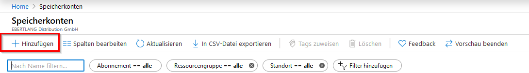 Klicken Sie anschließend auf "Hinzufügen", um ein neues Speicherkonto zu erstellen.