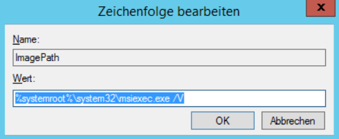 - Wenn sich die Datei "Msiexec.exe" im Ordner "C:\Windows\System32\" befindet, lautet der korrekte Pfad von "Msiexec.exe" im Feld Wert: