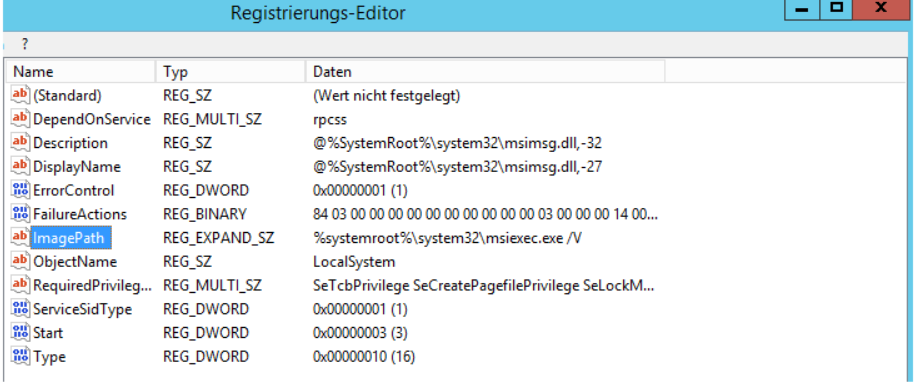 - Öffnen Sie folgenden Registrierungsschlüssel: HKEY_LOCAL_MACHINE\SYSTEM\CurrentControlSet\Services\MSIServer