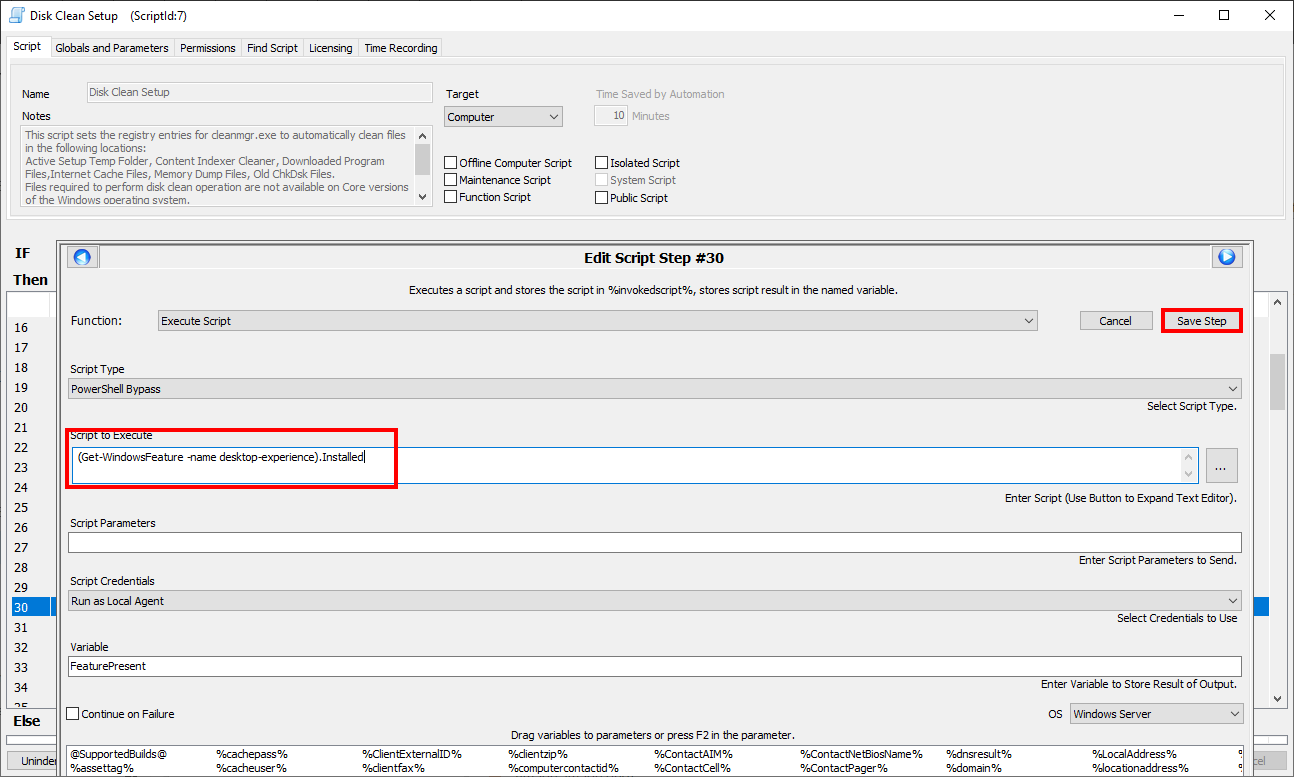 Bei der Verwendung des Standardskripts "Disk Cleanup" innerhalb von Connectwise Automate wird das Skript nicht ausgeführt und im Skriptprotokoll erscheint folgende Fehlermeldung: 'Desktop Experience was not detected. Disk Clean requires the Desktop Experience feature on...'