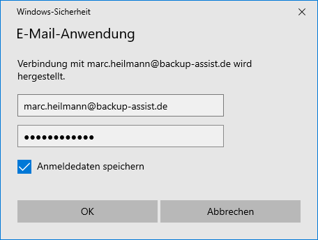Anschließend erscheint nun das nachfolgende Fenster. Hier geben Sie erneut die Anmeldedaten für das entsprechende Benutzerkonto an und speichern die Anmeldedaten mit der Option "Anmeldedaten speichern".