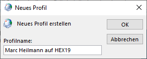 Vergeben Sie hier bitte den Namen des neuen Profils: