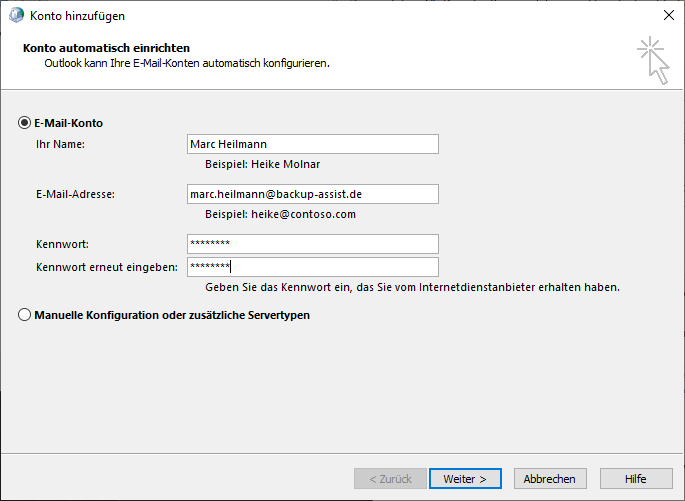 Tragen Sie die Daten des entsprechendes Benutzerkontos ein und bestätigen Sie mit einem Klick auf "Weiter".