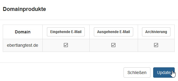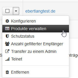 - Legen Sie eine Domain an und bearbeiten Sie deren zugewiesene Produkte