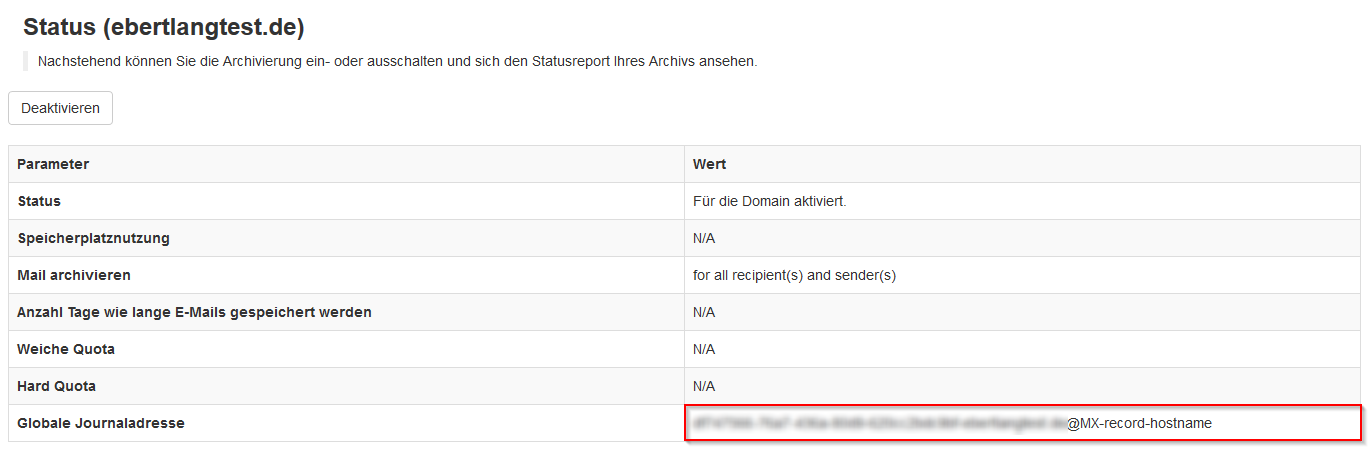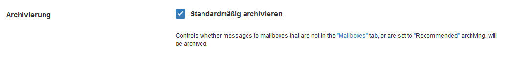 Hierbei sollten Sie auch die Standardkonfiguration Ihrer Domain in Bezug auf die Mail-Archivierung prüfen: