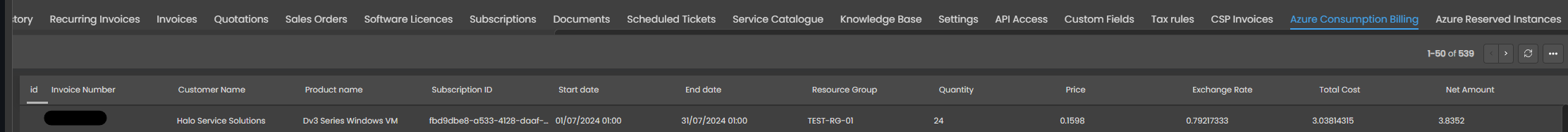 Für jeden über CSP importierten Kunden können Sie CSP-Rechnungen einsehen, die Daten zu Verbrauch und reservierten Instanzen enthalten.
