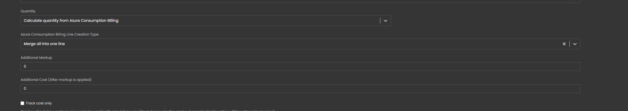 Um diese Daten schließlich abzurechnen, können Sie wiederkehrende Rechnungszeilen hinzufügen, die folgende Optionen bieten: