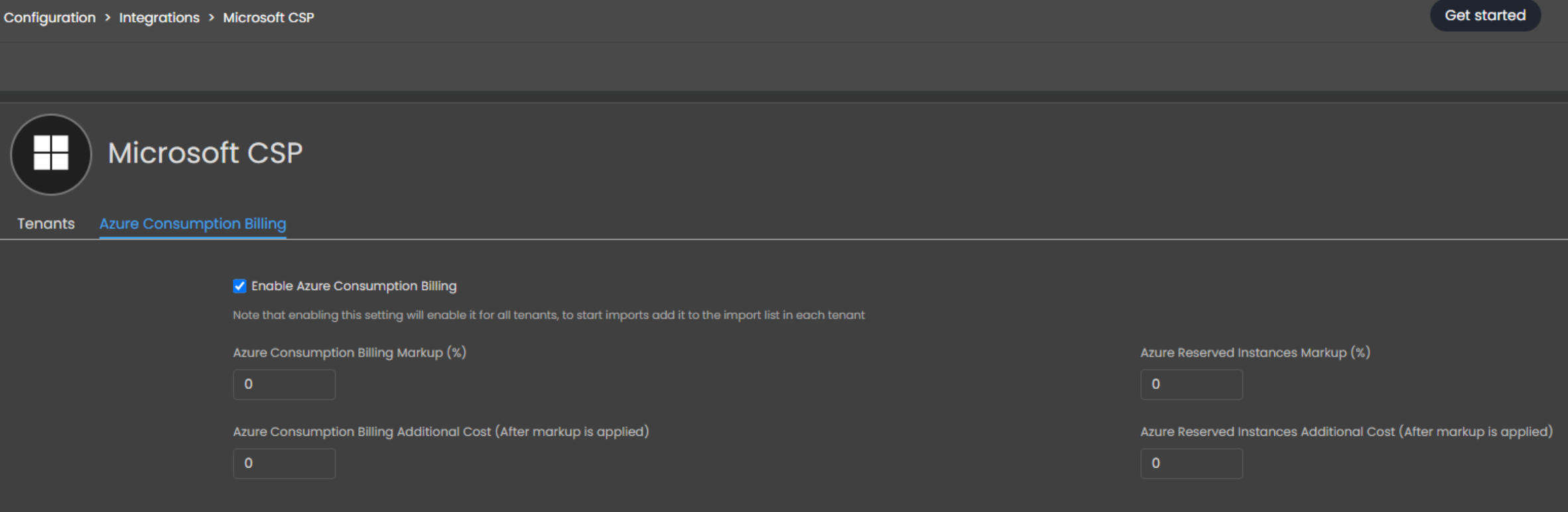 Um die Funktion zu aktivieren, klicken Sie unter den Integrationen auf Microsoft CSP und wechseln zum Tab ‚Azure Consumption Billing‘. Dort setzen Sie den Haken, um die Funktion zu aktivieren.