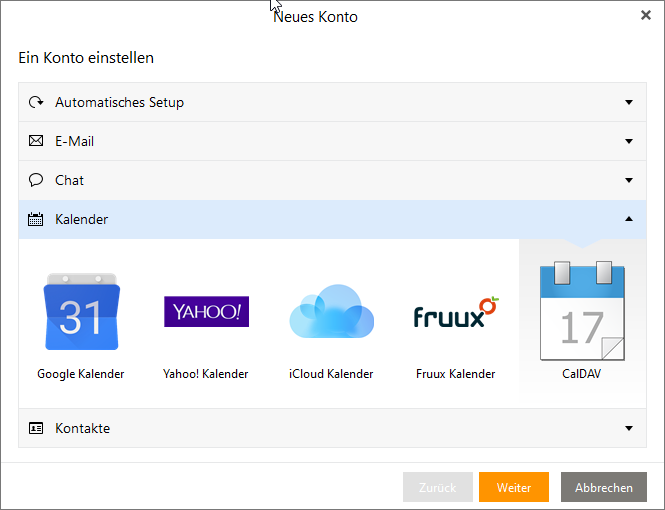 Hier können Sie im Bereich "Kalender", "CalDav" auswählen.
