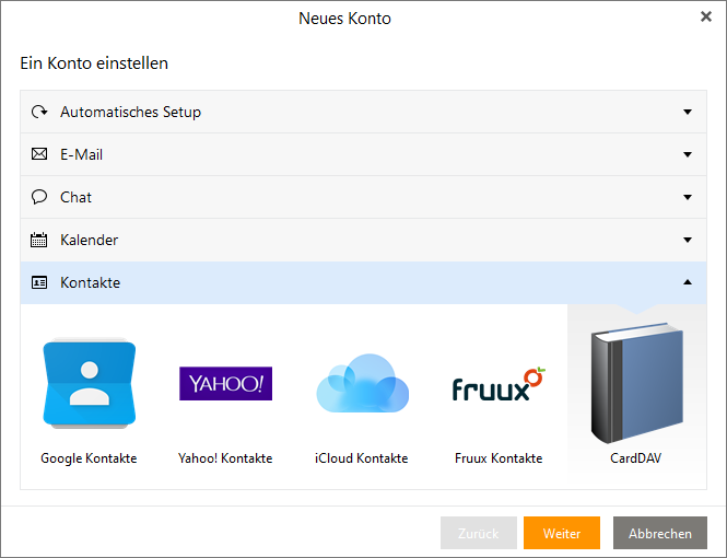 Wählen Sie hier "Kontakte" und "CardDAV: