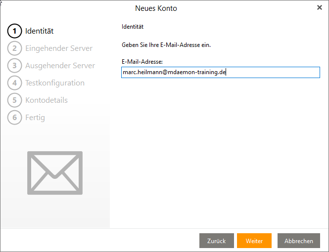 Die Konfiguration des eM-Clients kann direkt nach der Installation erfolgen und startet bei der Einrichtung der E-Mail Funktionalität:
