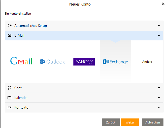 Im Reiter E-Mail wählen wir den Punkt "Exchange".