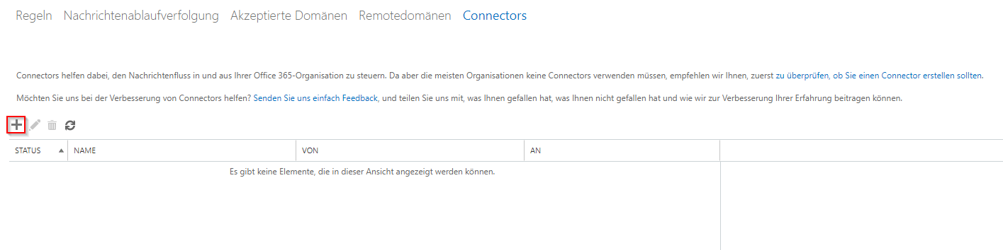 Melden Sie sich dafür in Exchange-Online an und gehen Sie auf Nachrichtenfluss → Connectors.