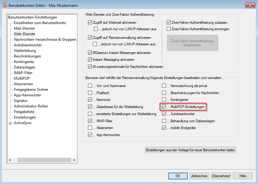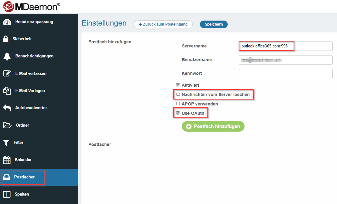 Hinterlegen der Daten auf dem MDaemon Email Server