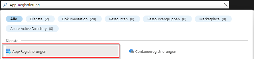 - Suchen Sie das Menü "App-Registrierung".