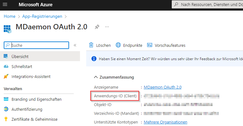 Notieren Sie sich die Anwendungs-ID (Client-ID).