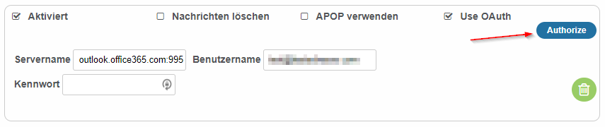 - Tragen Sie als Servername "outlook.office365.com:995" ein.