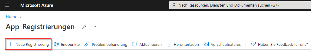App-Registrierung bei Microsoft Azure