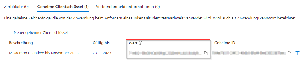 Klicken Sie auf "Neuer geheimer Clientschlüssel".