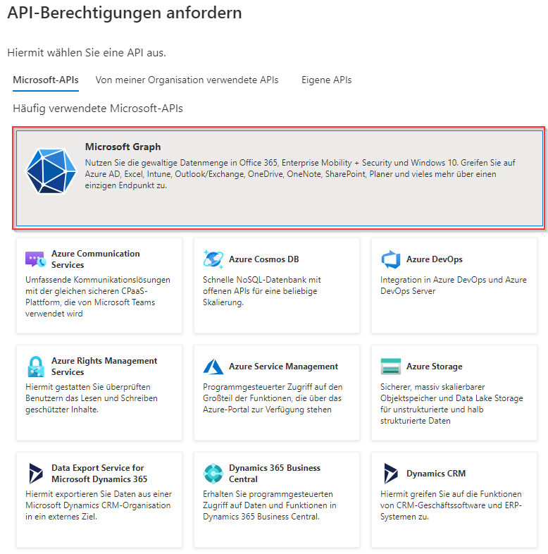 Wählen Sie "Microsoft Graph" aus.