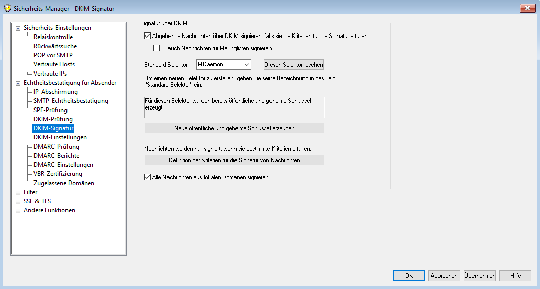 Weitere Einstellungen zu DKIM finden Sie im MDaemon unter "DKIM-Einstellungen".
