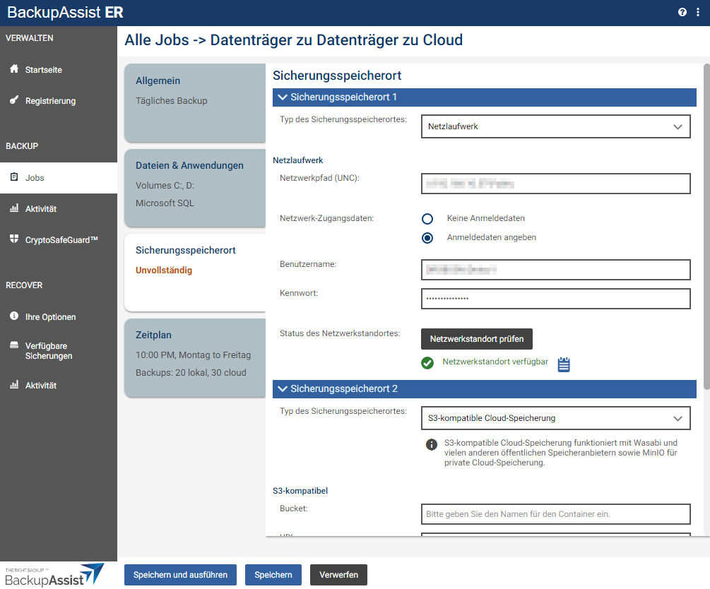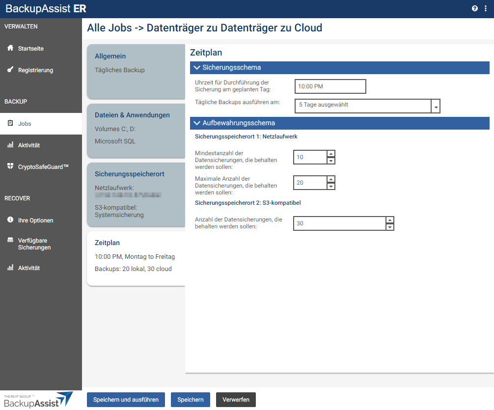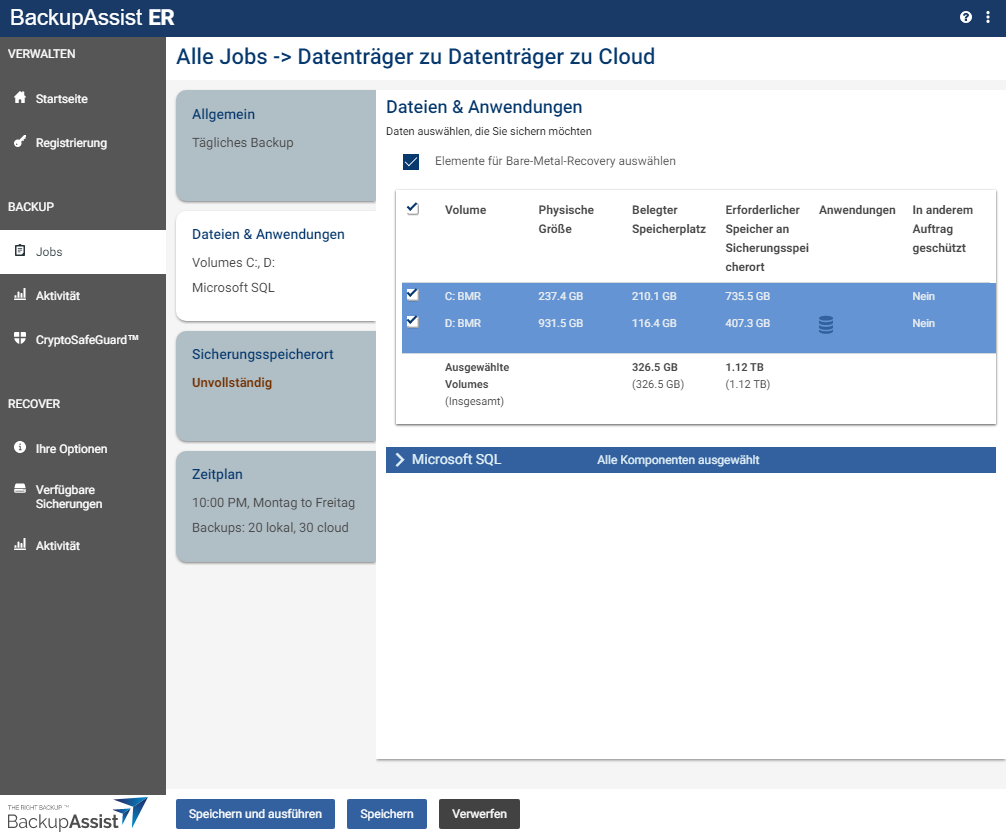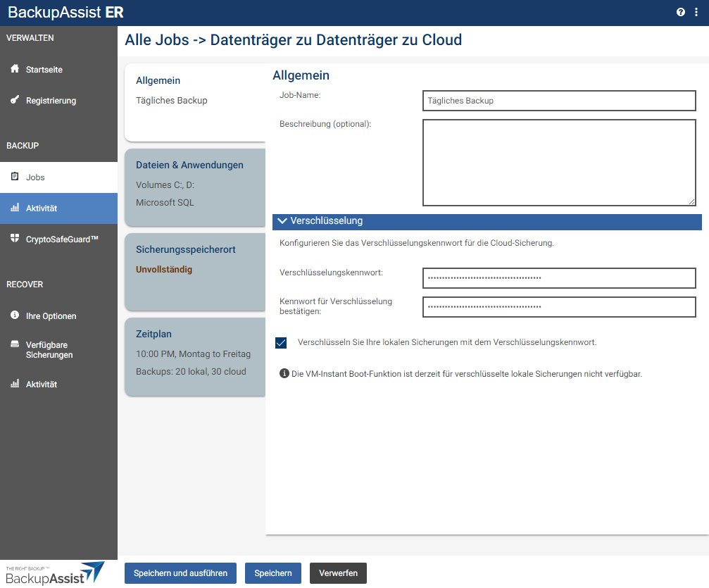 Einrichtung des Backup-Jobs in BackupAssist ER