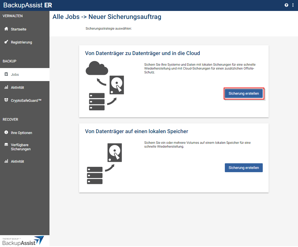 - Sie können jetzt mit der Einrichtung des Backup-Jobs in BackupAssist ER fortfahren.