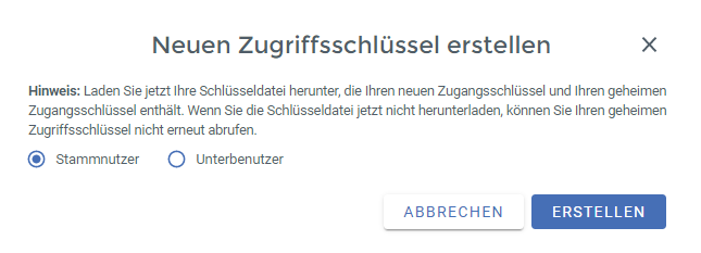 Erstellung der API-Zugriffsschlüssel