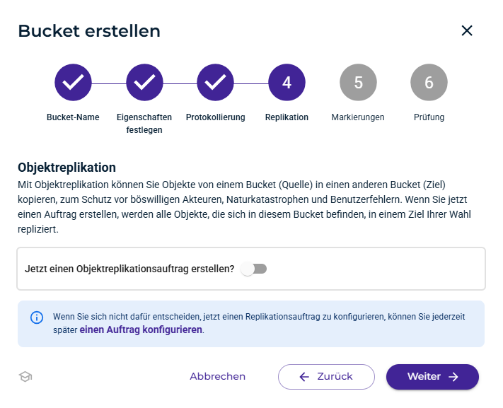 - Schnelles Anlegen sowie direktes Konfigurieren von Speicher-Buckets